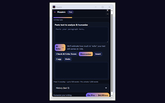 Huumn هو ملحق Chrome مصمم لتحسين جودة الكتابة من خلال تحويل النصوص الروبوتية أو الشبيهة بالذكاء الاصطناعي إلى صيغة أكثر طبيعية وصوتًا إنسانيًا. هذه الأداة المجانية مفيدة بشكل خاص للمستخدمين الذين يرغبون في أن تتردد كتاباتهم - سواء في رسائل البريد الإلكتروني أو منشورات وسائل التواصل الاجتماعي أو المقالات الأكاديمية - مع الأصالة. من خلال معالجة المشكلة الشائعة المعروفة باسم 'صدى الذكاء الاصطناعي'، يعيد Huumn كتابة النص للحفاظ على الأفكار الأصلية مع تحسين التدفق والنغمة، مما يضمن أن الناتج النهائي يعكس صوتًا أكثر وضوحًا وإنسانية.